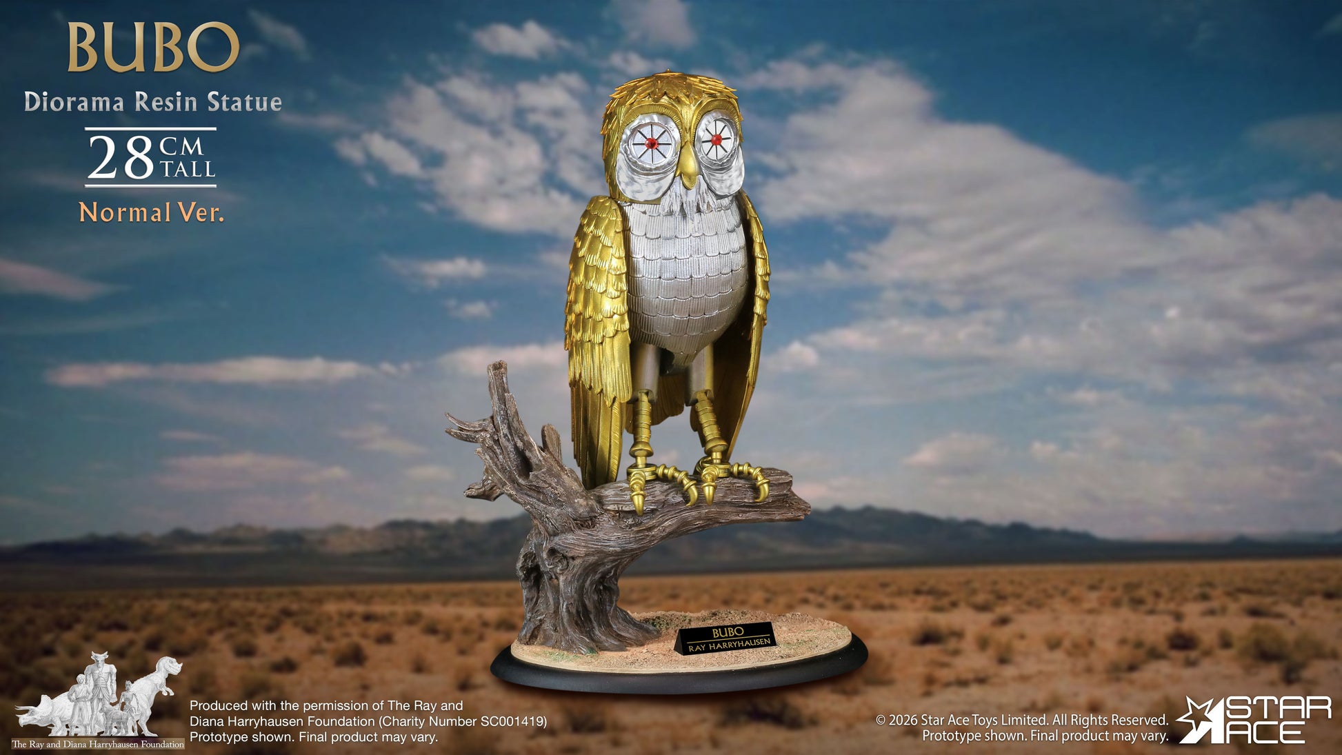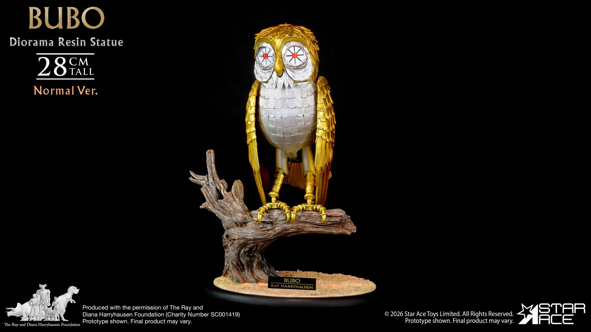 Star Ace presents a new version of Ray Harryhausen’s classic creation, Bubo the mechanical owl. Perched in readiness on a gnarled and weathered branch from the sacred groves of Mount Olympus, Bubo, the loyal golden owl from the 1981 classic Clash of the Titans, stands ready for a new quest. This highly detailed, hand-painted polyresin statue from Star Ace Toys perfectly captures every legendary detail of the iconic automaton.