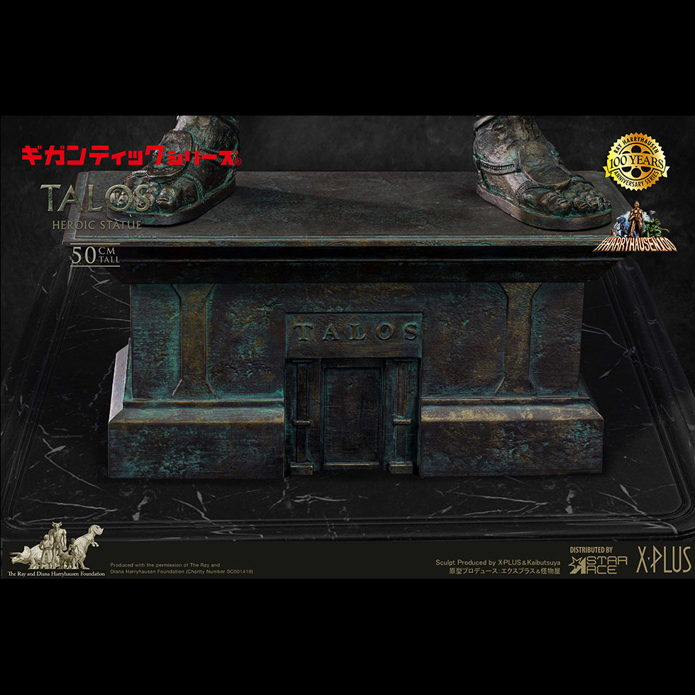 This “Gigantic” version of Talos is posed as the great titan was when first encountered by Sinbad. Traditionally sculpted by the artisans of the famed creature shop of Kaibutsuya, this detailed Talos statue is made from soft vinyl and stands 50cm tall (60cm with display base). Each piece is hand-painted to look like it has an ancient Bronze finish.