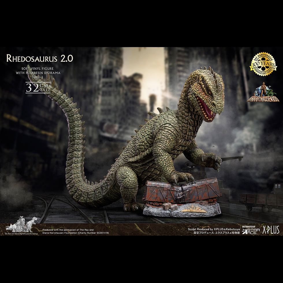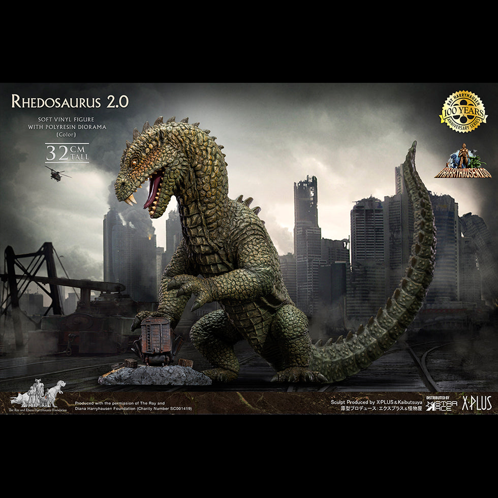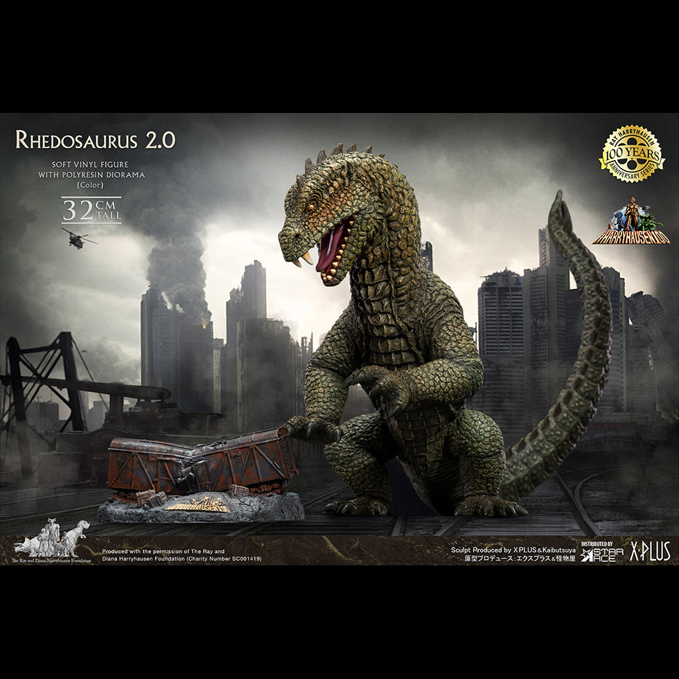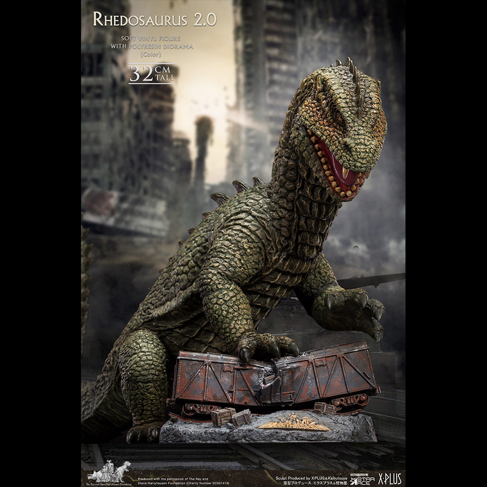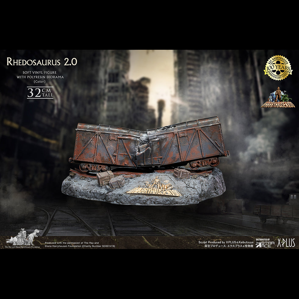 Traditionally sculpted by the artisans of the famed creature shop of Kaibutsuya, this detailed Rhedosaurus statue is made from soft vinyl and stands 32cm tall. The diorama base featuring the train car is polyresin. Each piece is hand-painted to bring out the details of the sculpt.