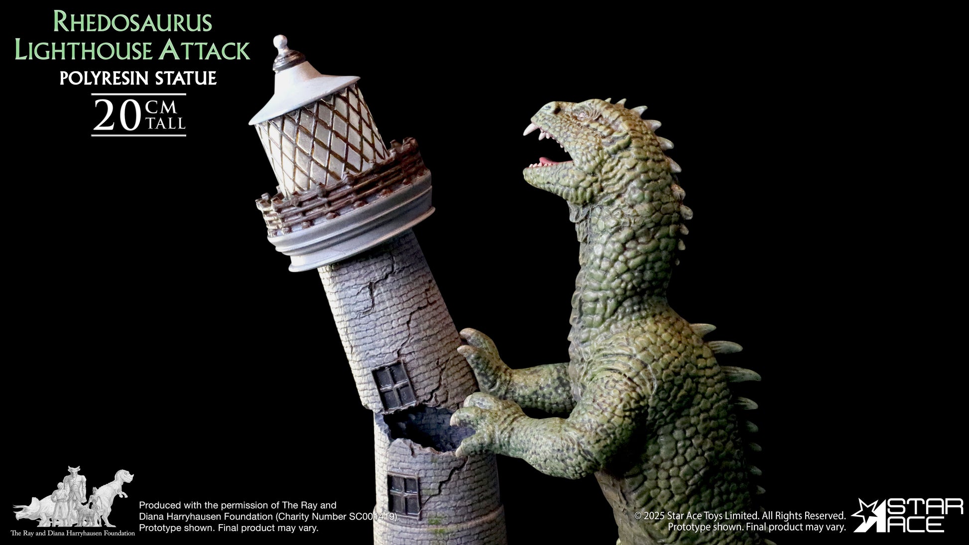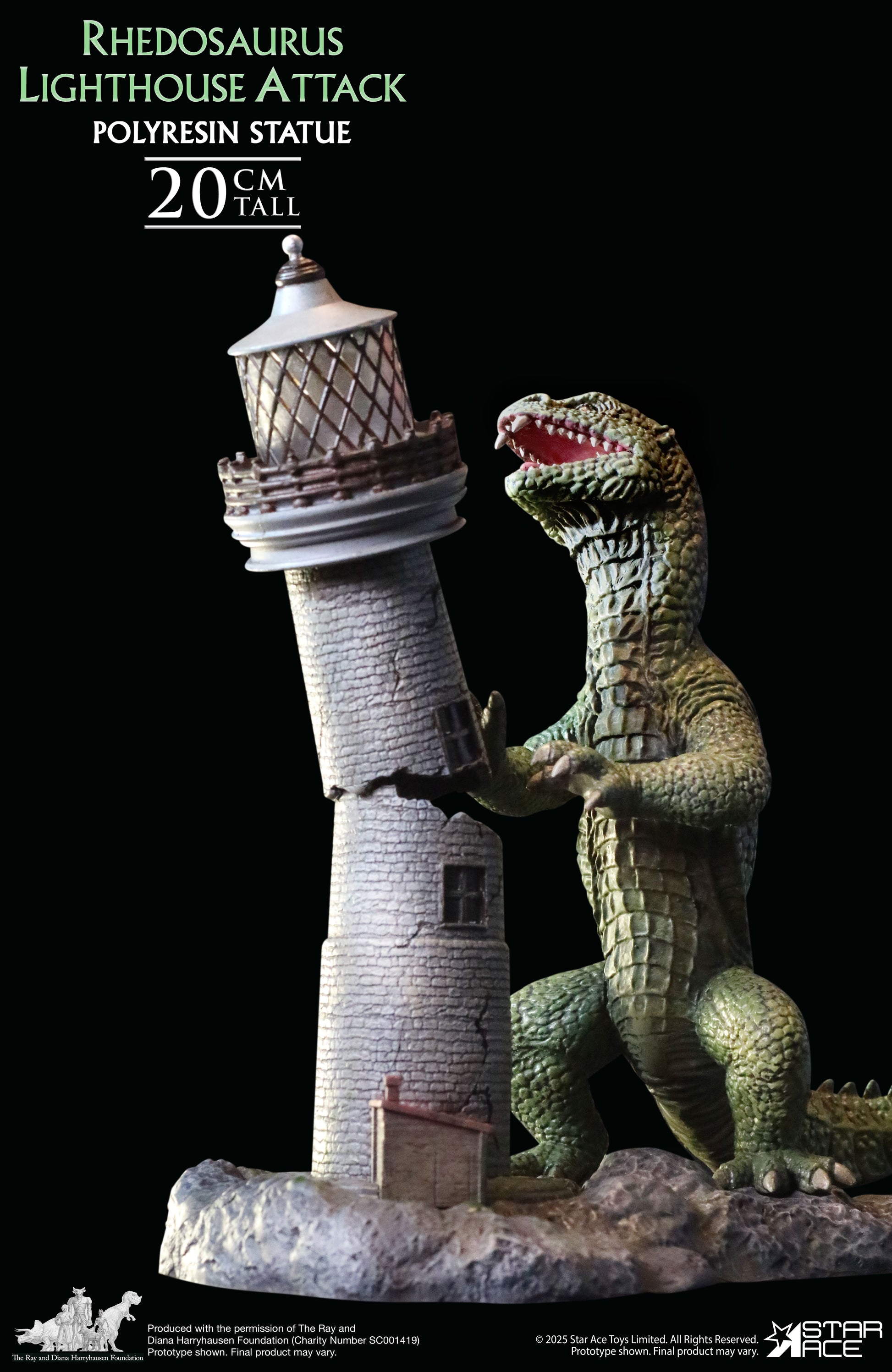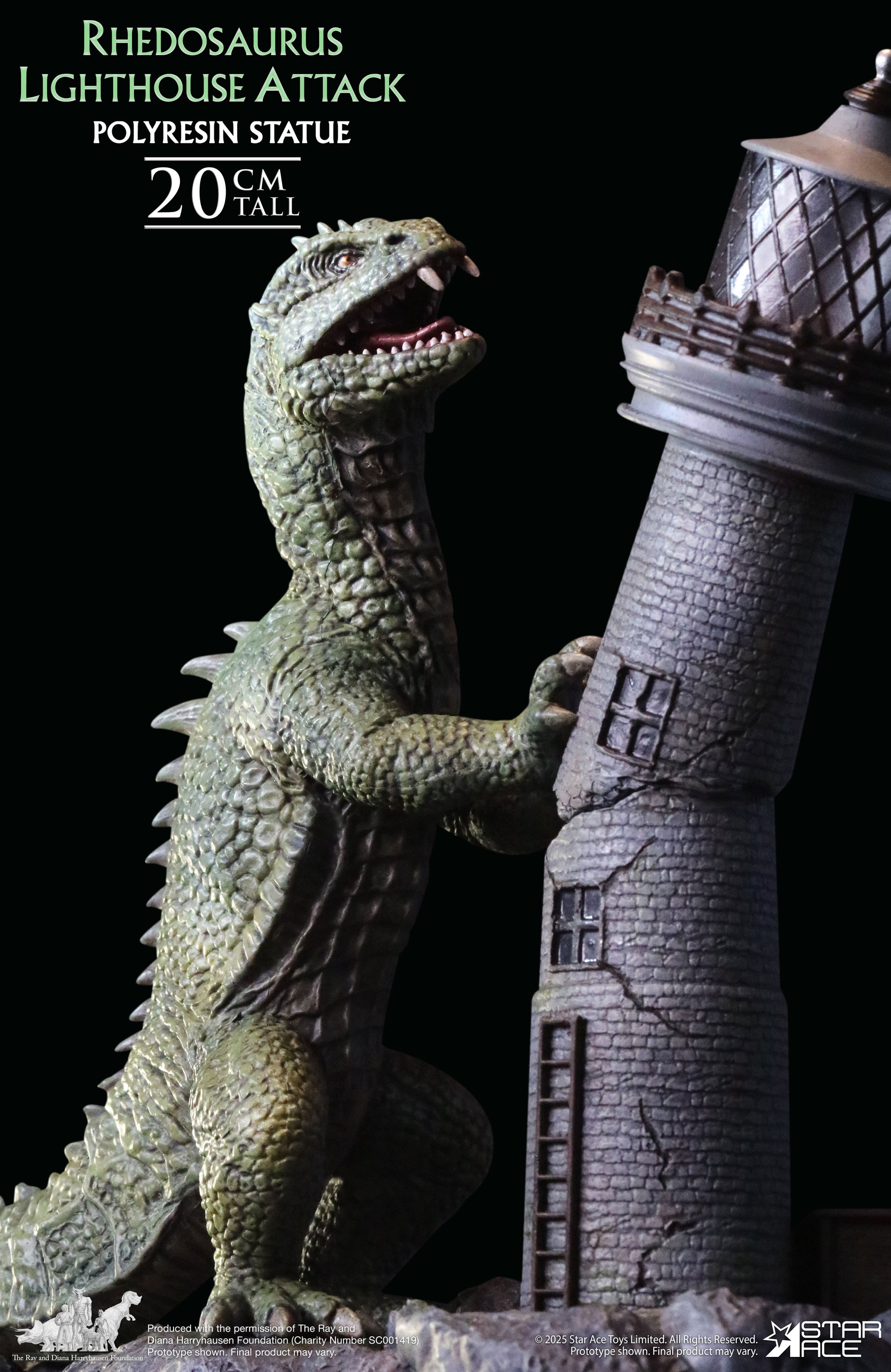 From the depths of the prehistoric seas and the brilliant mind of special effects maestro Ray Harryhausen, the terror that started it all returns! Star Ace is honored to present an incredibly detailed, hand-painted polyresin statue of the colossal Rhedosaurus in its most iconic scene: attacking a coastal lighthouse.